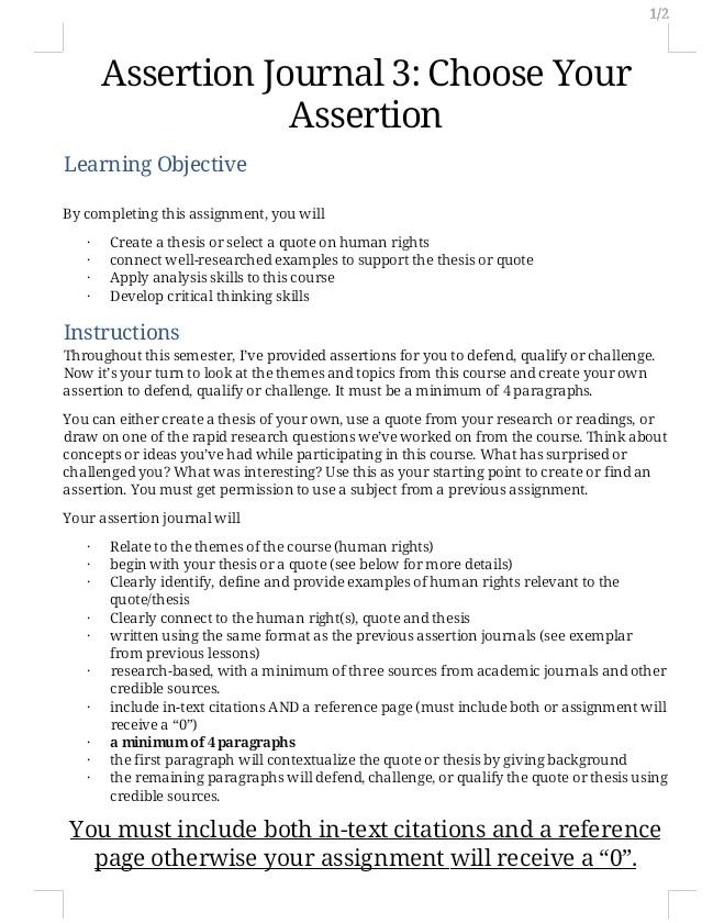 1/2 Assertion Journal 3: Choose Your Assertion | Chegg.com