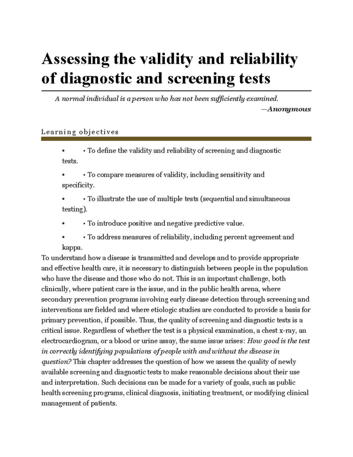 Assessing Validity and Reliability of Diagnostic Tests in Health Care ...