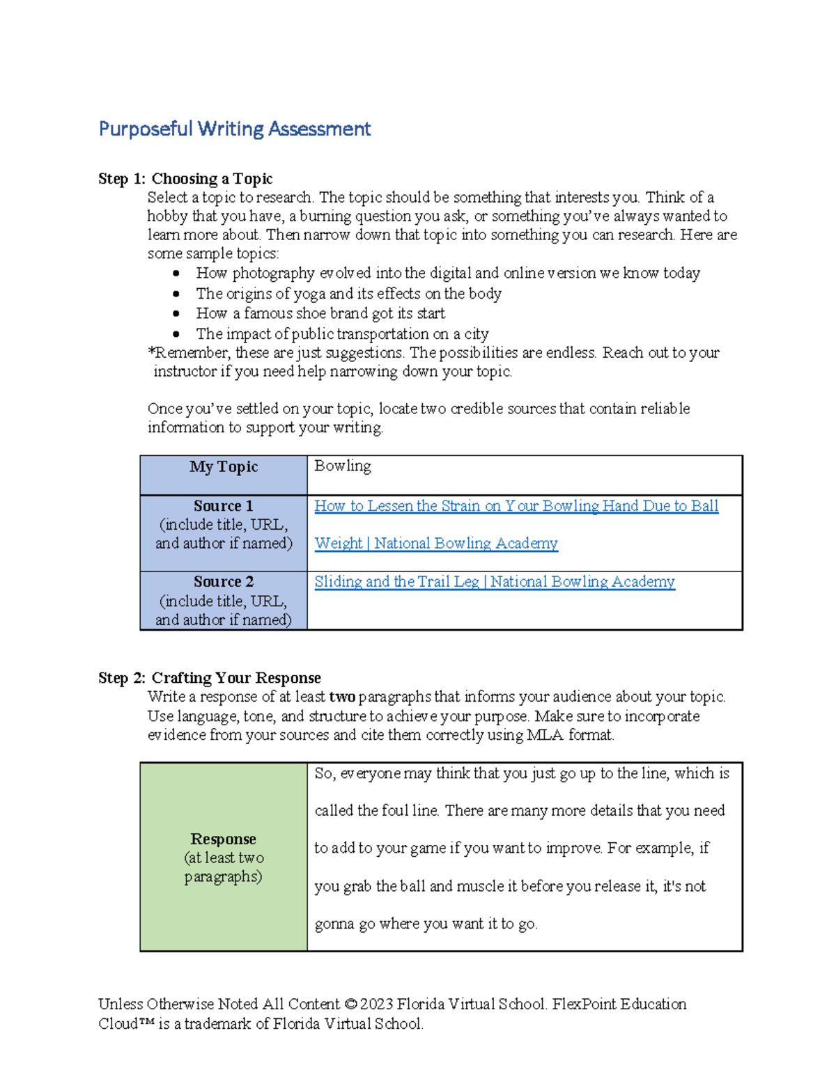 ENG 101: Purposeful Writing Assessment - Topic Selection & Response ...