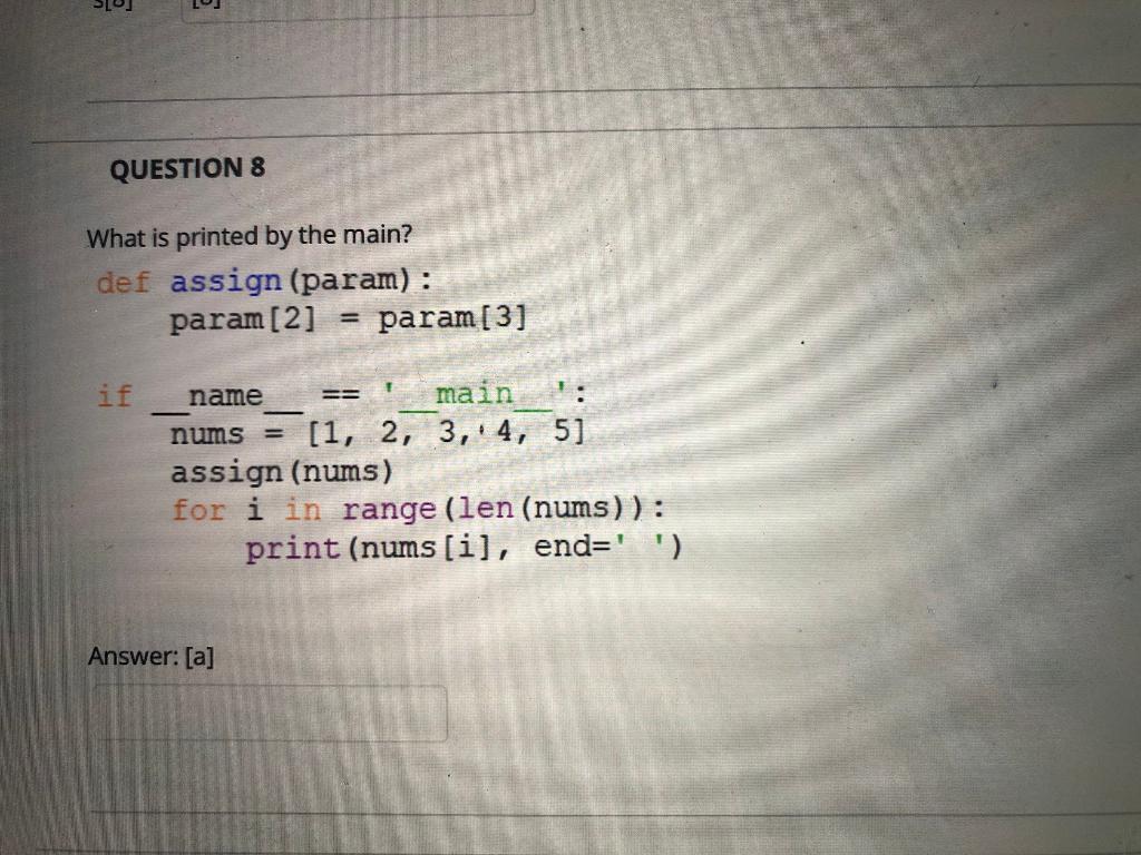 Solved QUESTION 8 What is printed by the main? def assign | Chegg.com