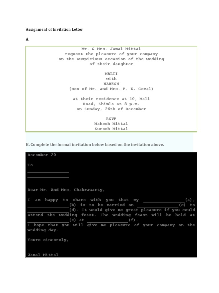 Assignment on Invitations A. You are a student of Sacred Heart Convent S..