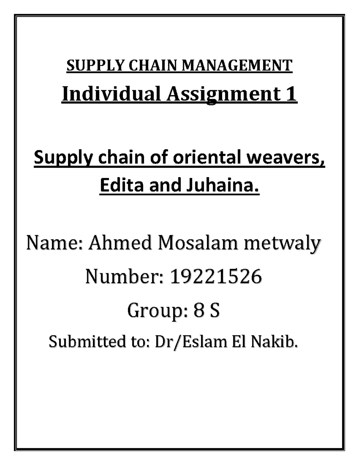 E-SC - Assignment No.1 - Amr Mohamed Elhamy.docx - E-Supply Chain Group ...