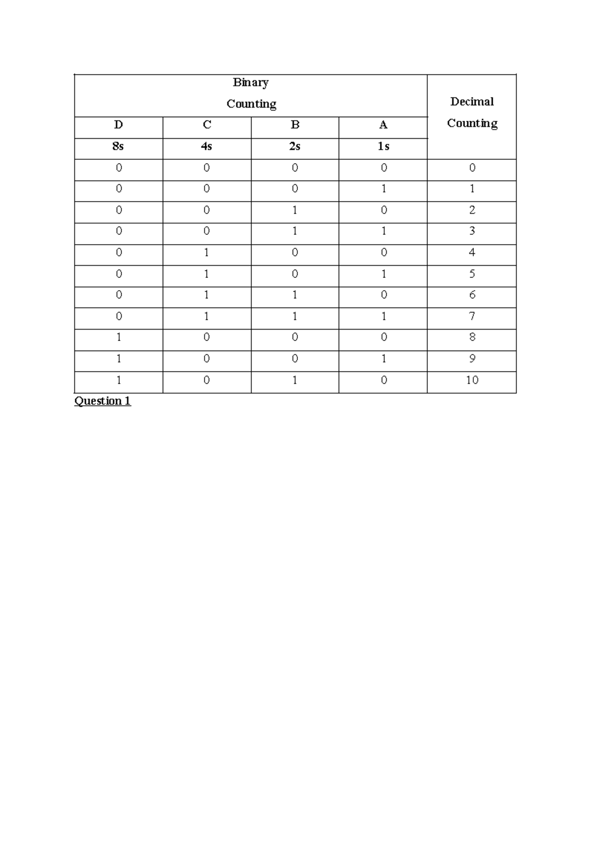 Assignment 2 PHY340 - truthtable - Binary Counting Decimal D C B A ...
