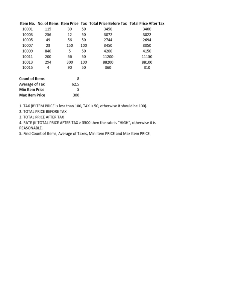 Assignment 8s Item Pricing Summary | PDF
