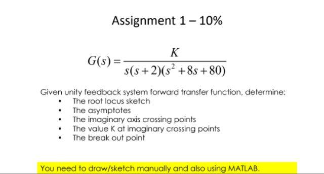 Solved Assignment 1 - 10% K G(s) = s(s+2)(s² +8s +80) Given | Chegg.com