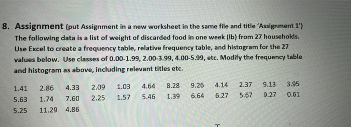Solved 8. Assignment (put Assignment in a new worksheet in | Chegg.com