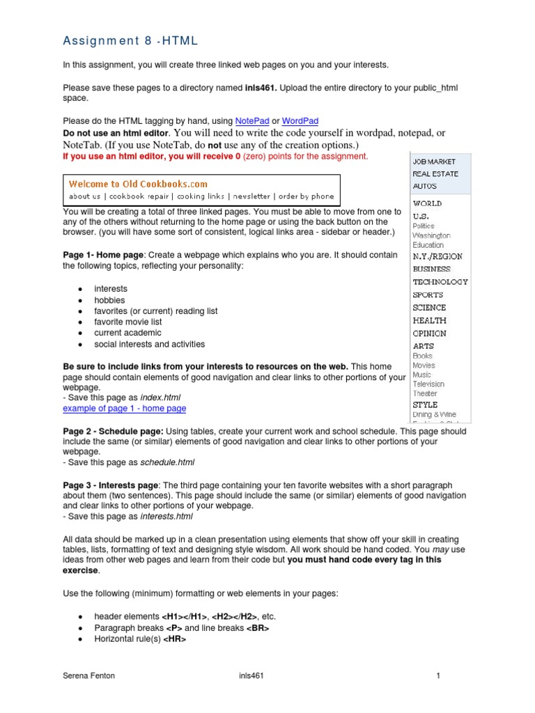 HTML Assignment - homework - HTML Assignment Instructions For this ...