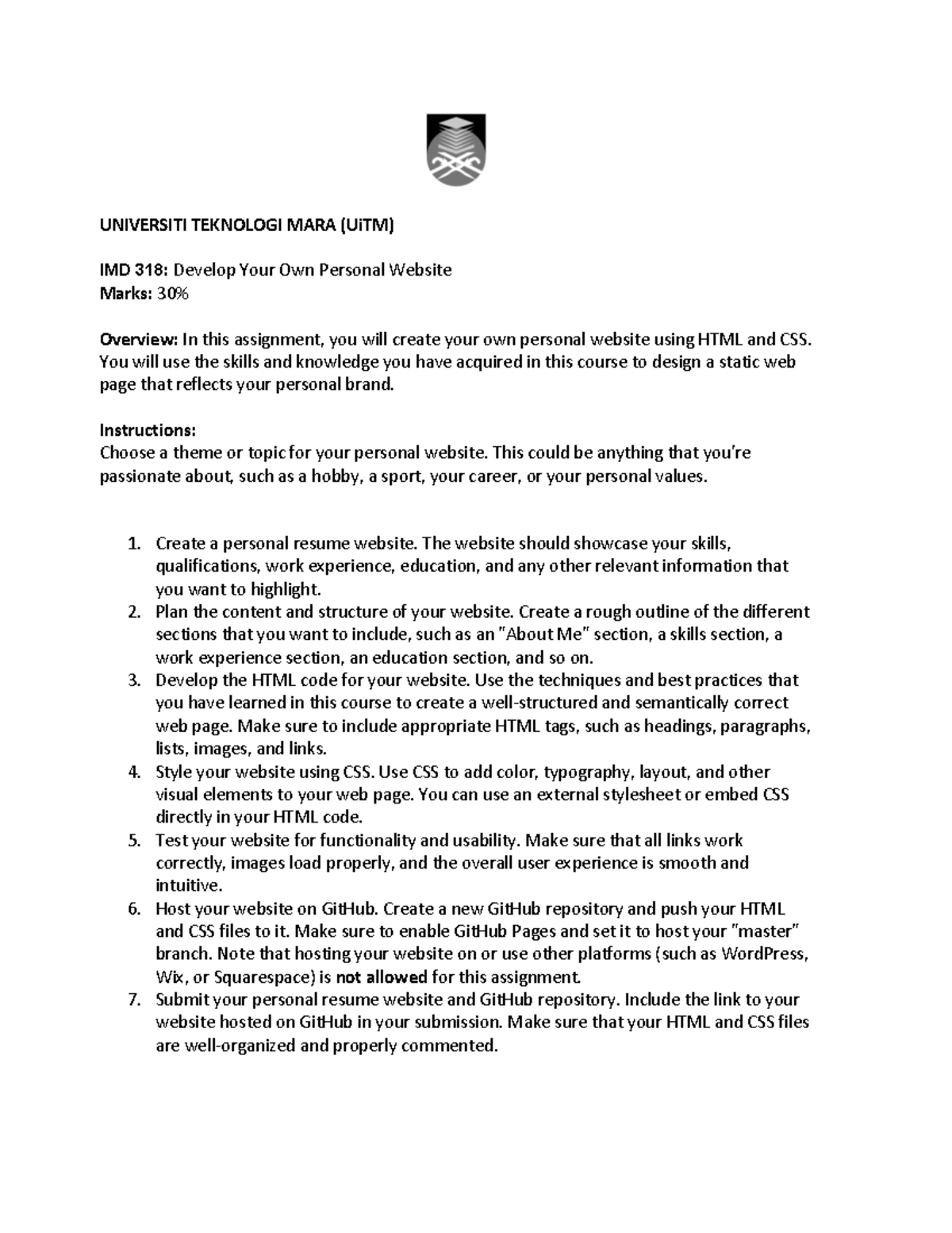 Guideline for IMD318 2024: Create Your Personal Website Assignment ...