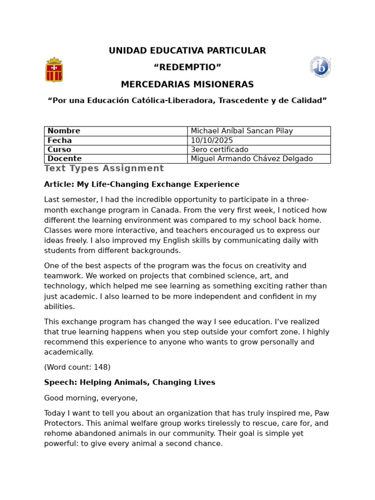 Text Types Assignment | PDF | Anxiety | Panic Attack
