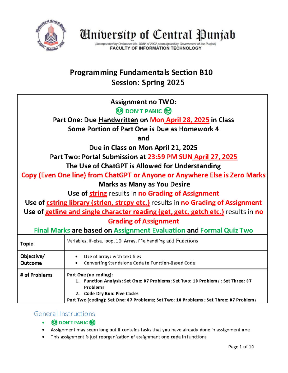 S25 PF Assignment Two: PANIC Part One & Two Guidelines for B10 - Studocu