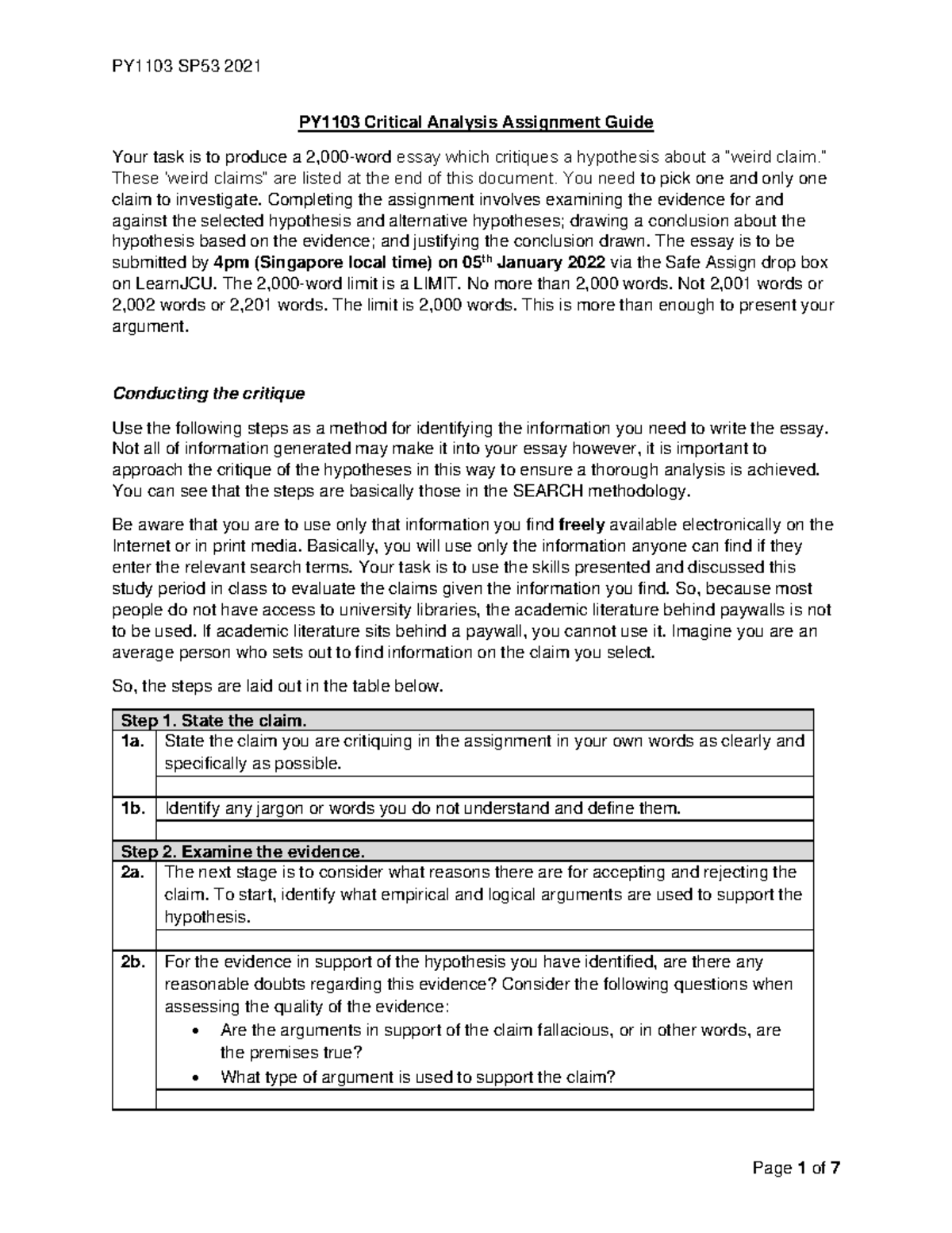 PY1103 SP53 2021 assignment - PY1103 Critical Analysis Assignment Guide ...
