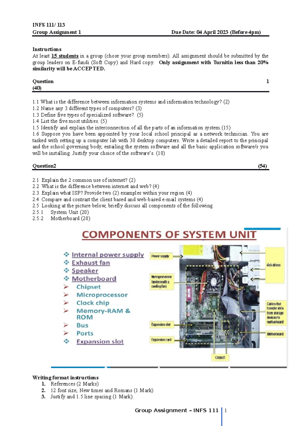 Assignment 1 INFS111 2023 - INFS 111/ 113 Group Assignment 1 Due Date ...