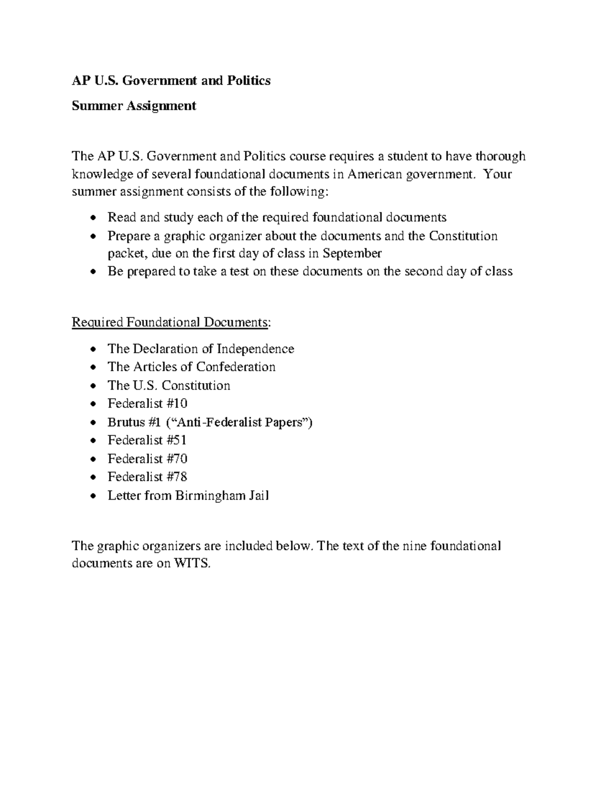AP U.S. Government & Politics Summer Assignment Overview - Studocu