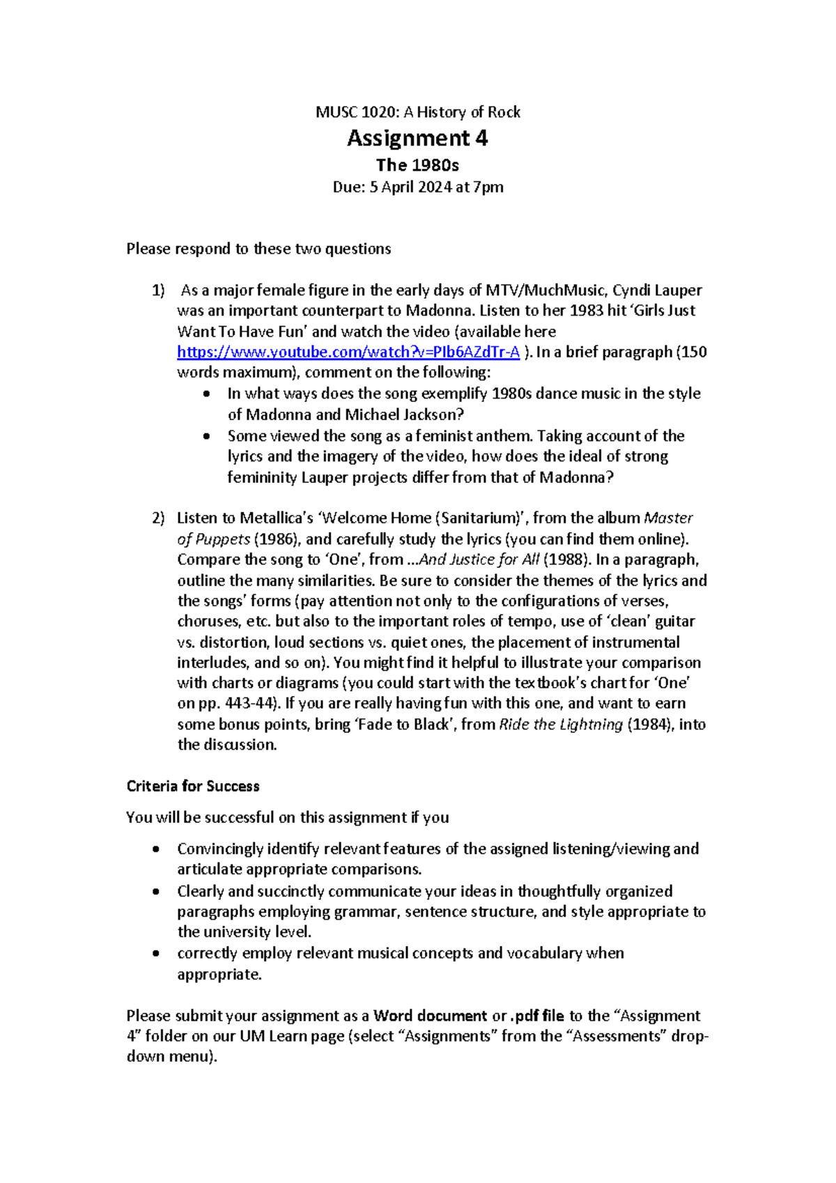 MUSC 1020: Assignment 4 - Analyzing 1980s Music Trends and Feminism ...