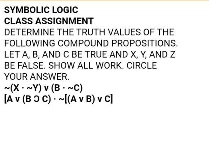 Solved SYMBOLIC LOGIC CLASS ASSIGNMENT DETERMINE THE TRUTH | Chegg.com