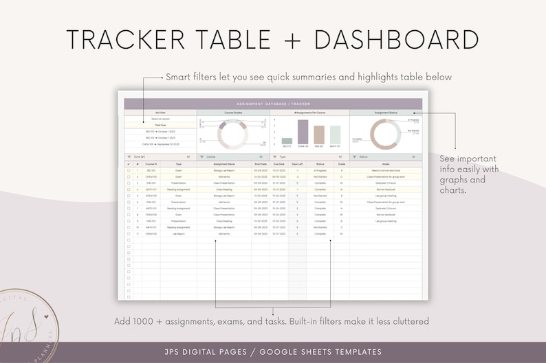 ASSIGNMENT TRACKER Google Sheets Template Homework Planner College and ...