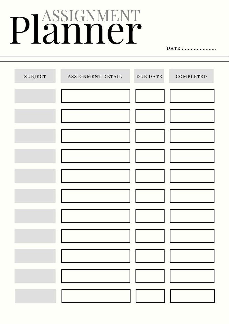 PRINTABLE and Digital Assignment Tracker + Assignment Planner, Digital ...