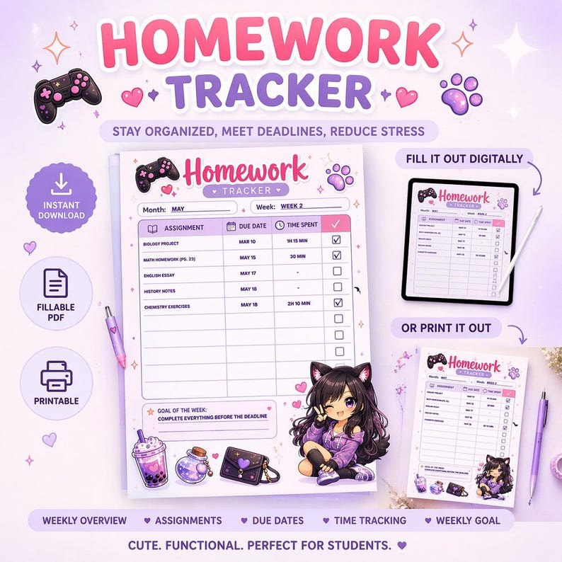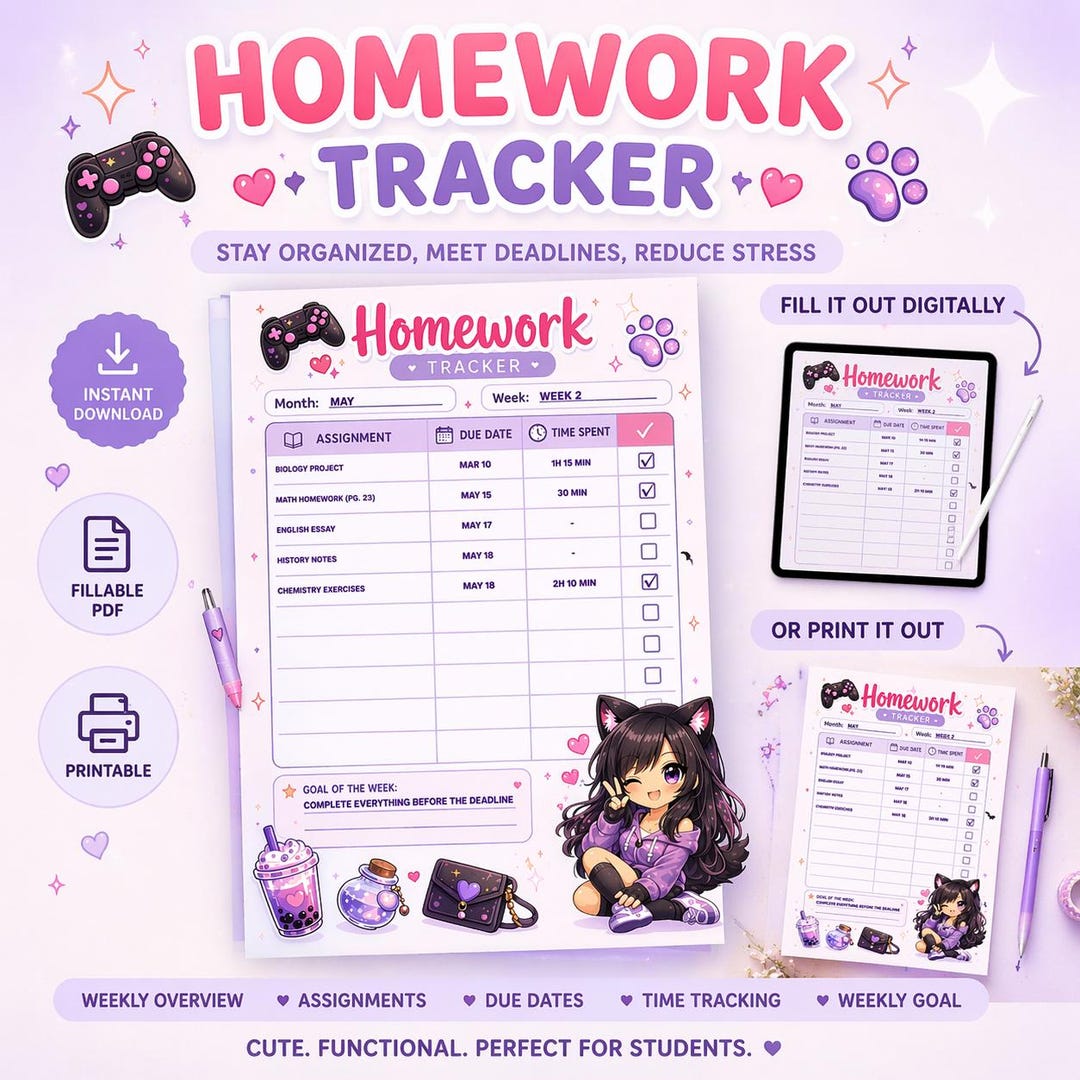 Homework Tracker Printable | Fillable Student Planner PDF (instant ...