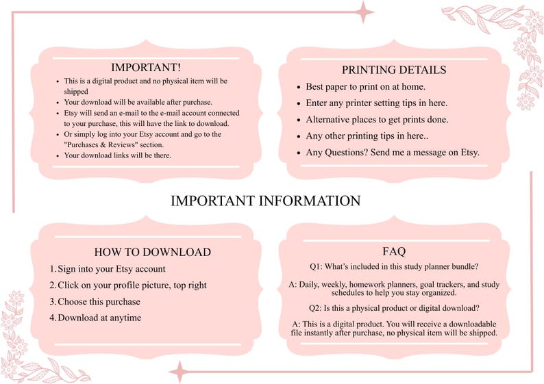 Pink Study Planner Bundle | Printable | Daily Weekly & Goal Planner ...