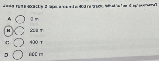 Solved: Jada runs exactly 2 laps around a 400 m track. What is her ...