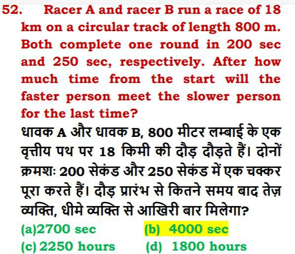 Solved: Racer A and racer B run a race of 18 km on a circular track of ...