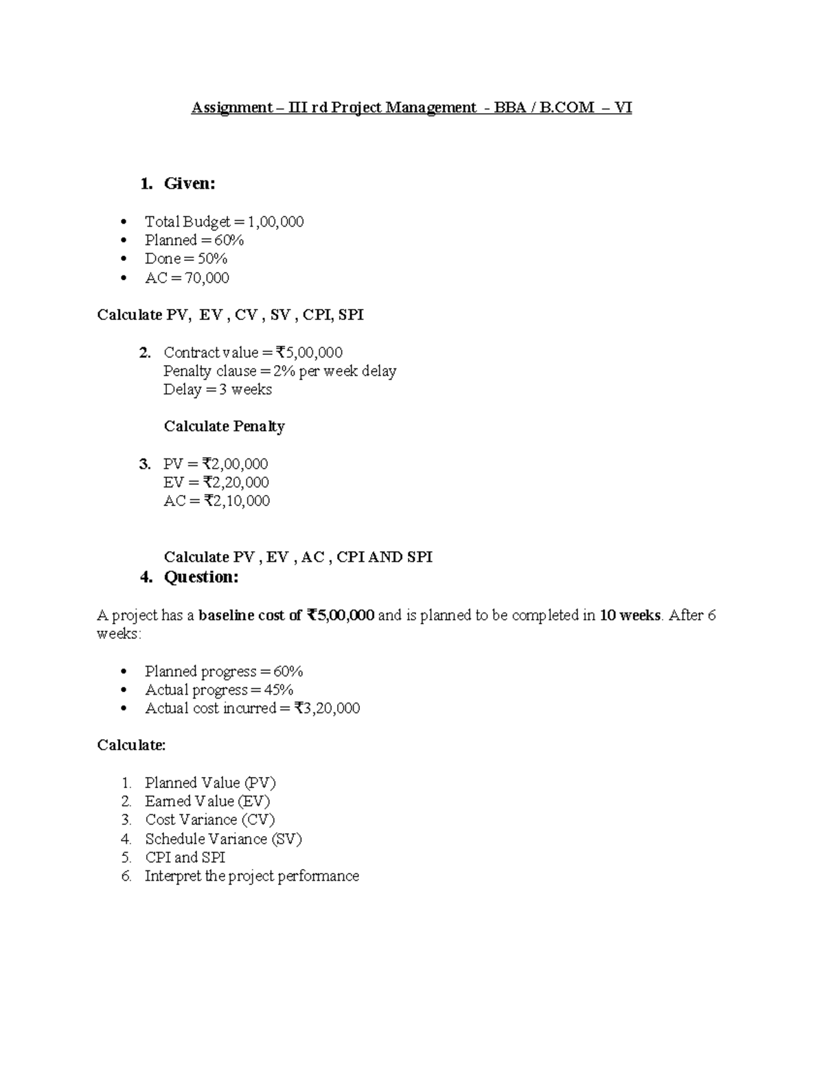 BBA B.COM VI Project Management Assignment: Performance Metrics ...