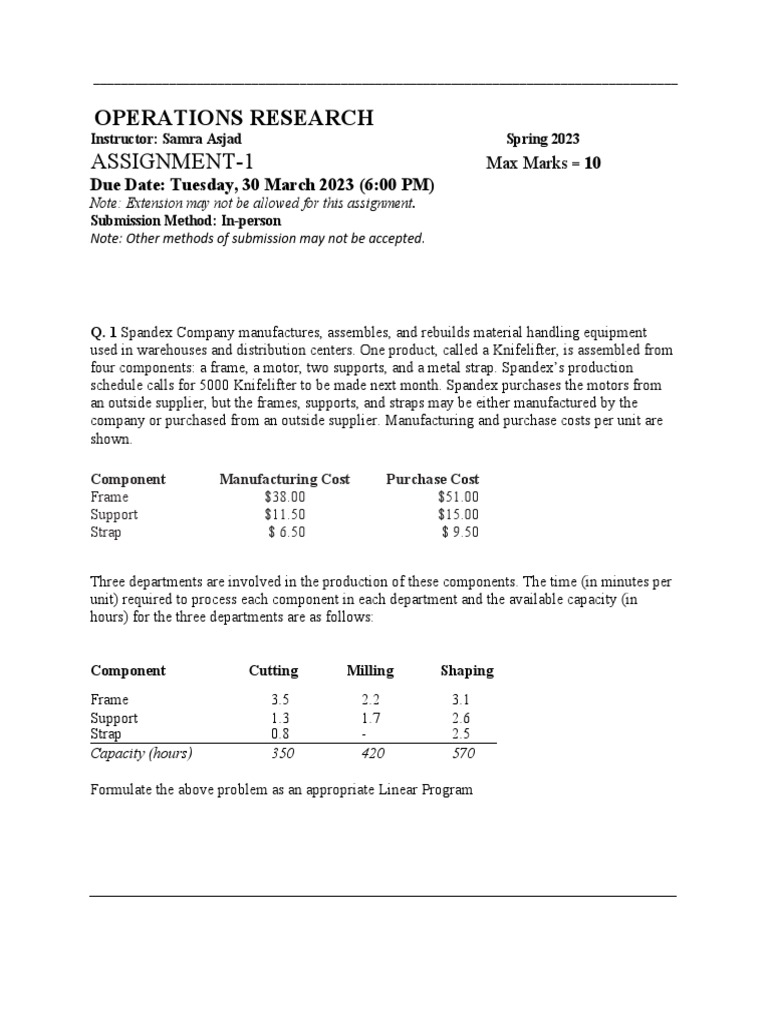 Operations Research Assignment 1: Formulating Linear Programming ...