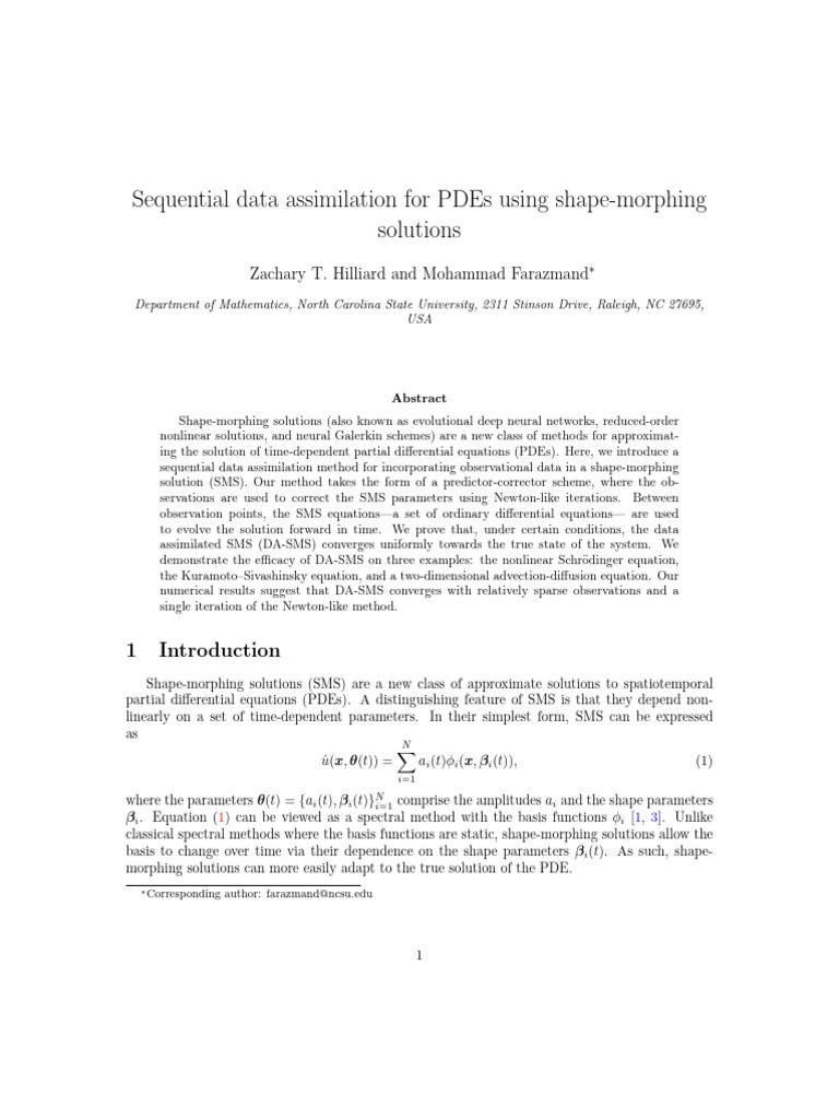 Sequential Data Assimilation For PDEs Using Shape-Morphing Solutions ...