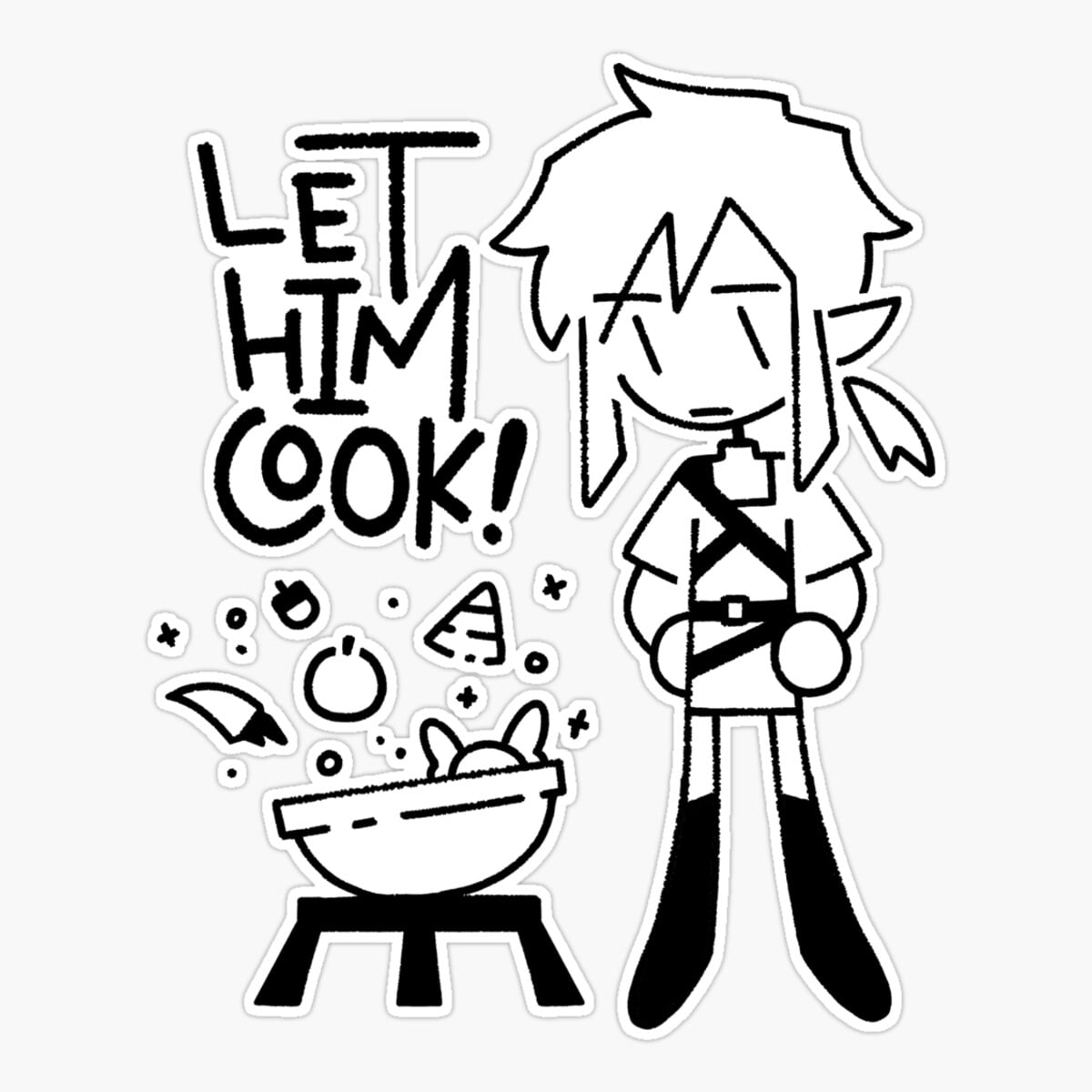 "LET HIM COOK " Sticker for Sale by Marie Esp | Redbubble