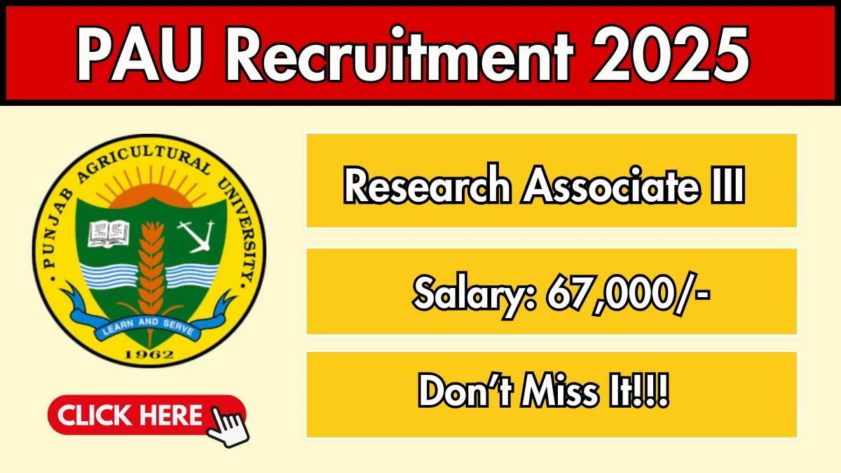 PAU Research Associate III Recruitment 2025 - Apply Offline