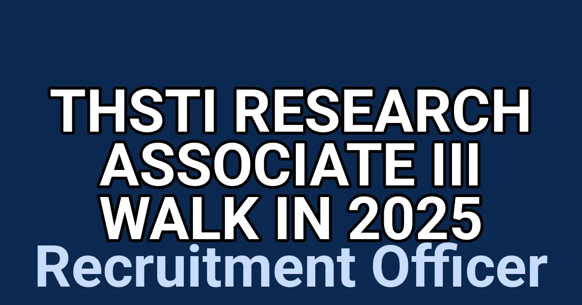 THSTI Research Associate III Recruitment 2025 – Walk in for 01 Posts
