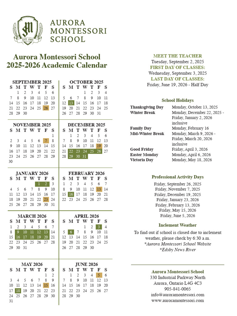Instructional Calendars 2025-2026 – Our School – Calvert Charter for ...