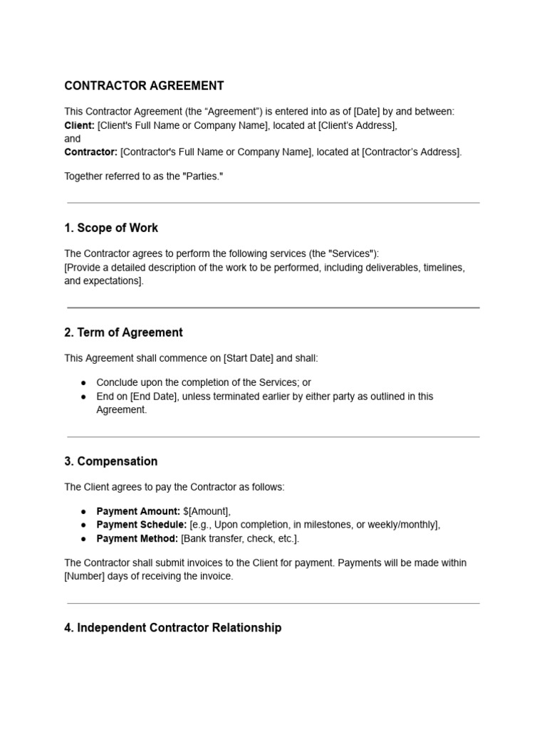 Contractor Agreement Template