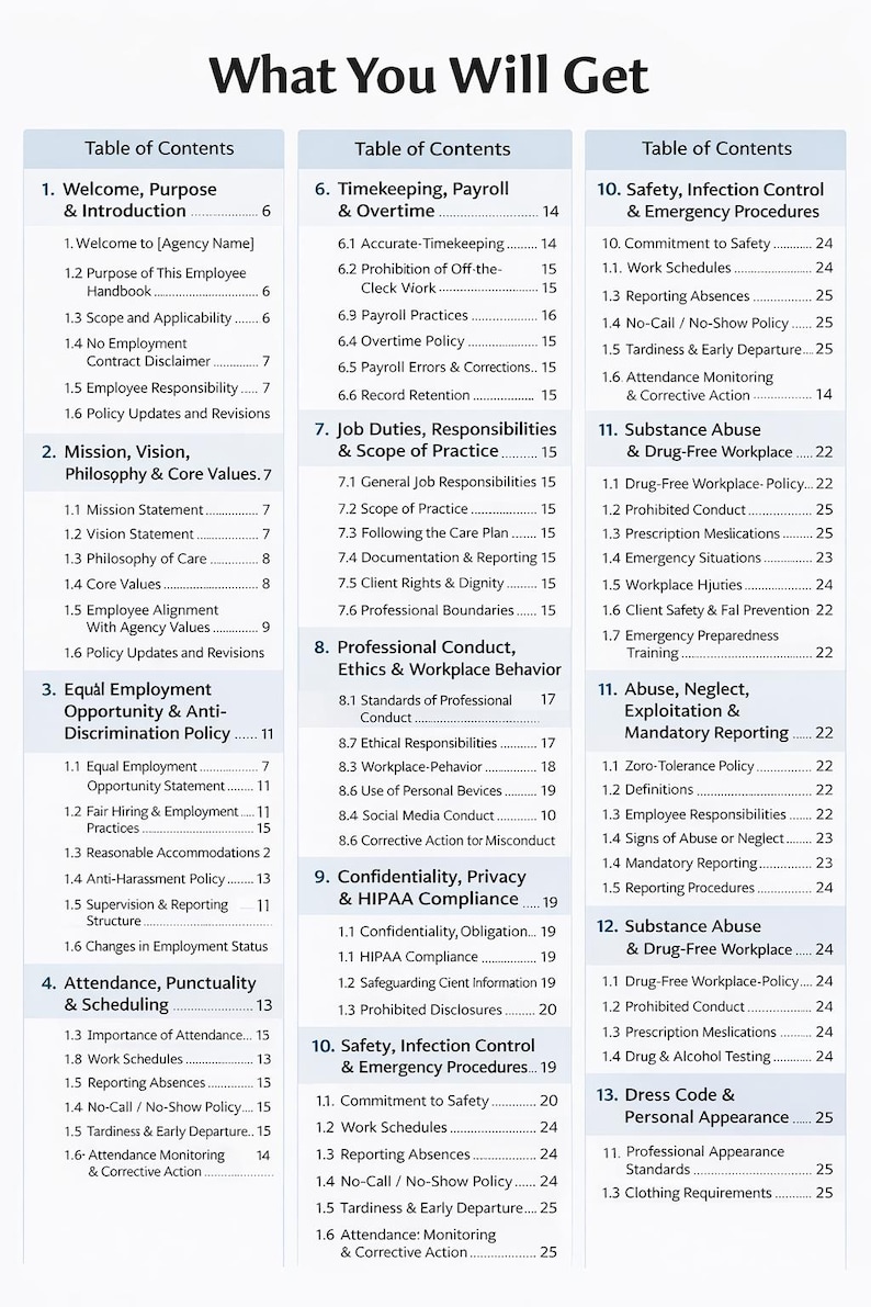 Home Care Employee Handbook Template | Caregiver Policy Manual | HIPAA ...