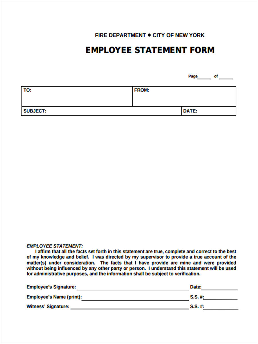 FREE 8+ Sample Employee Statement Forms in MS Word | PDF