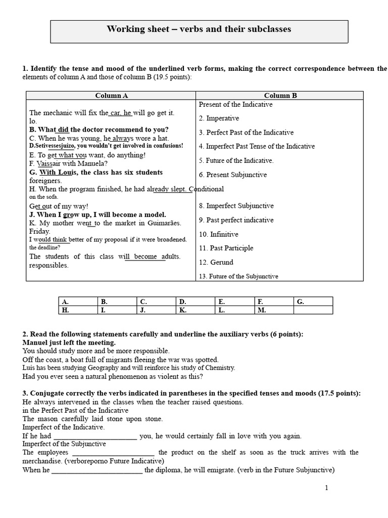 Work Sheet Verbs-Subclasses | PDF | Grammatical Tense | Verb