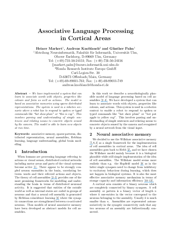 (PDF) Associative language processing in cortical areas