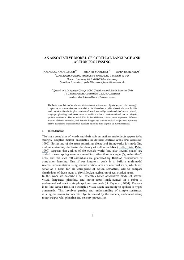 (PDF) An Associative Model of Cortical Language and Action Processing