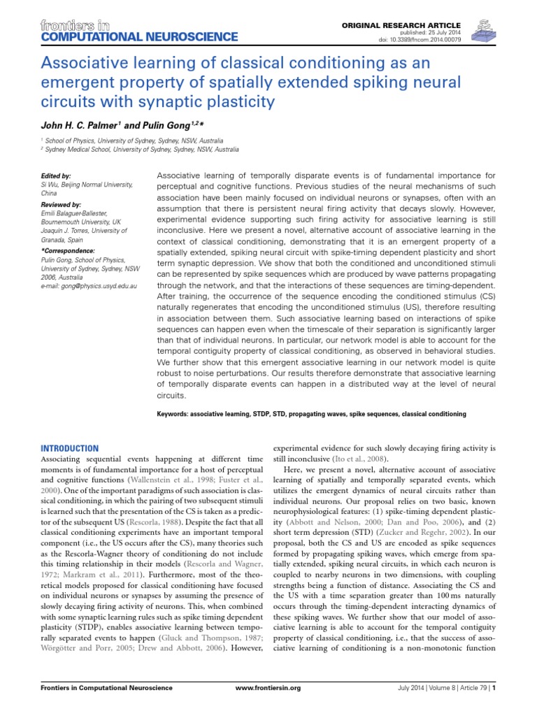 Associative Learning | PDF | Classical Conditioning | Synaptic Plasticity