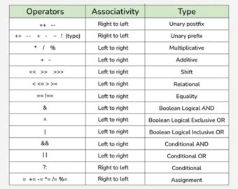 Operators, Types of Operators, Precedence And Associativity | Java ...