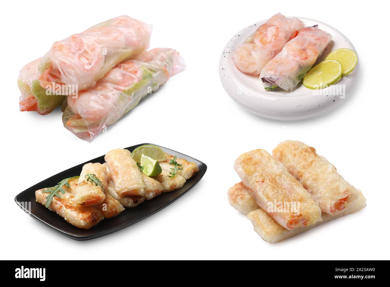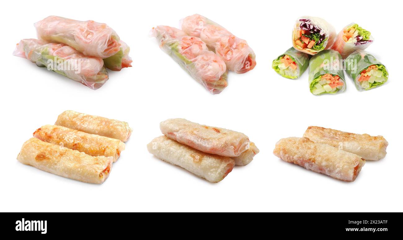 Delicious spring rolls isolated on white, set Stock Photo - Alamy