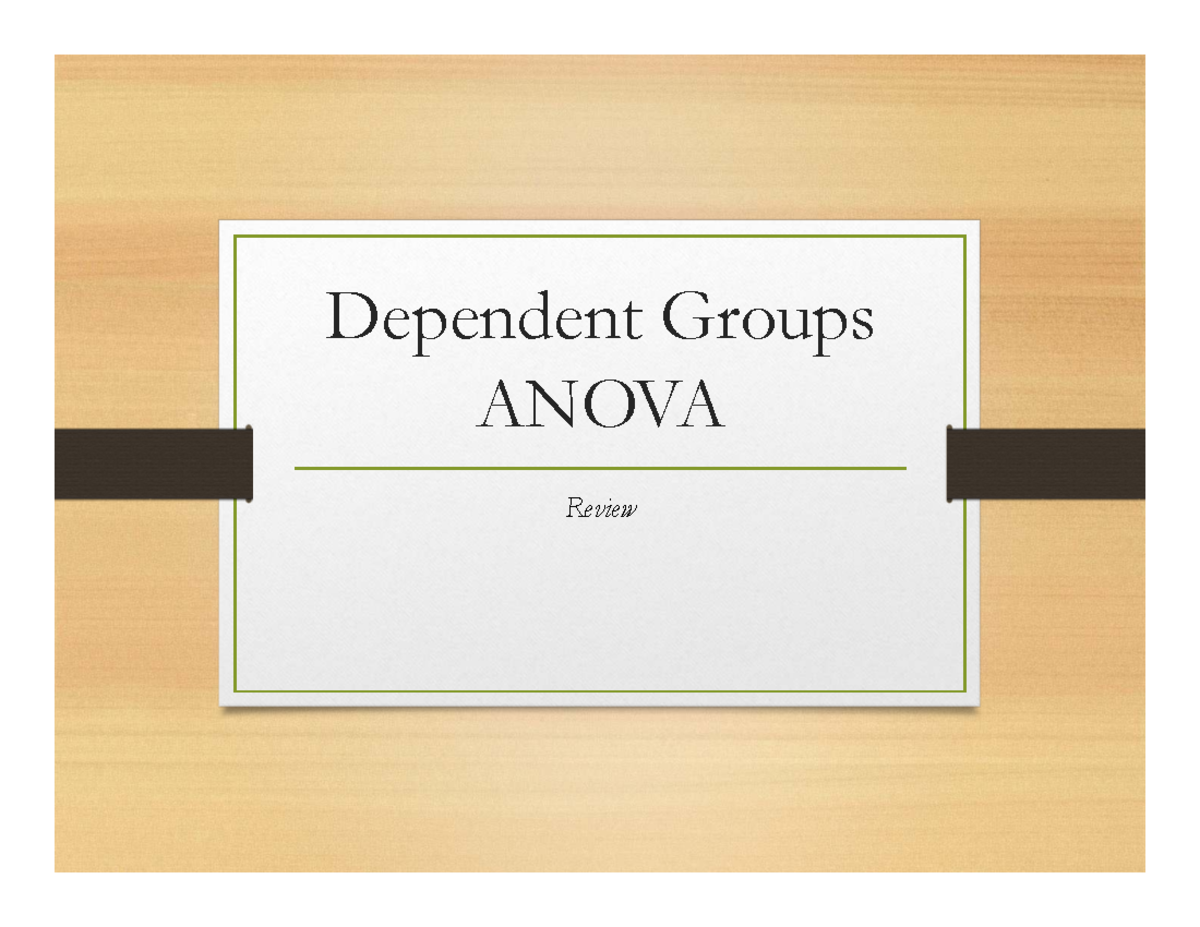 W10 - Dependent Groups ANOVA Review: Variance Partitioning - Studocu