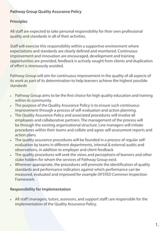 Pathway Group Quality Assurance Policy | PDF