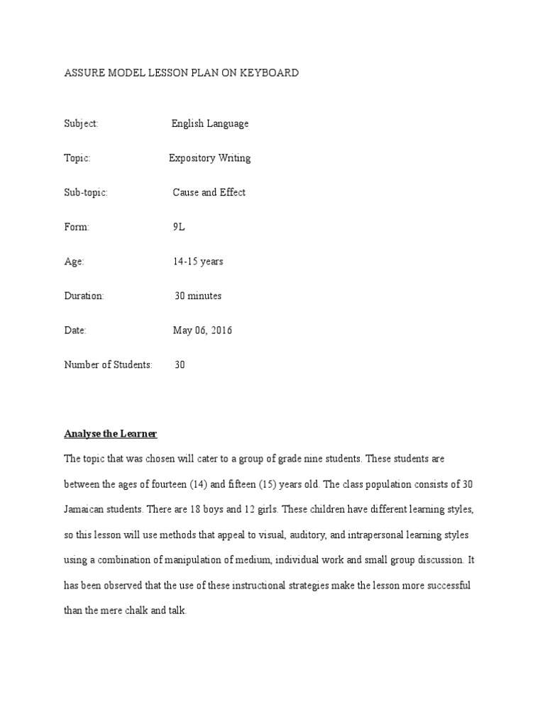 Assure Model Lesson Plan | PDF | Lesson Plan | Causality