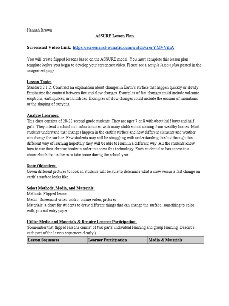 ASSURE Lesson Plan Template: Sample Lesson Plan Posted in The ...