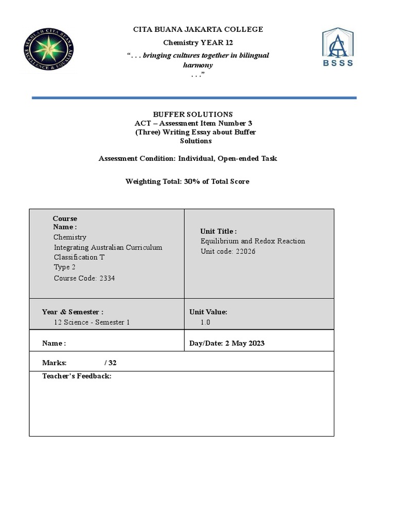 ACT - Task 3 - Buffer Solution Essay | PDF