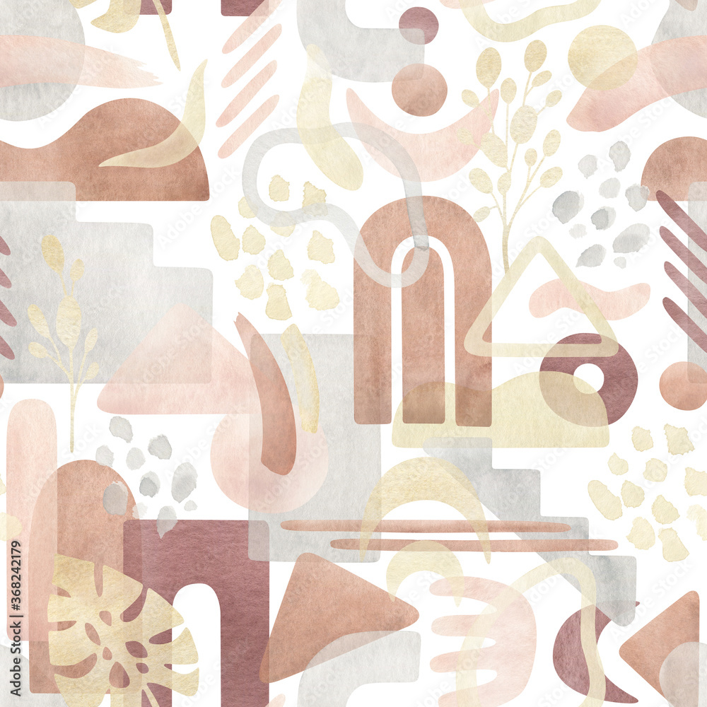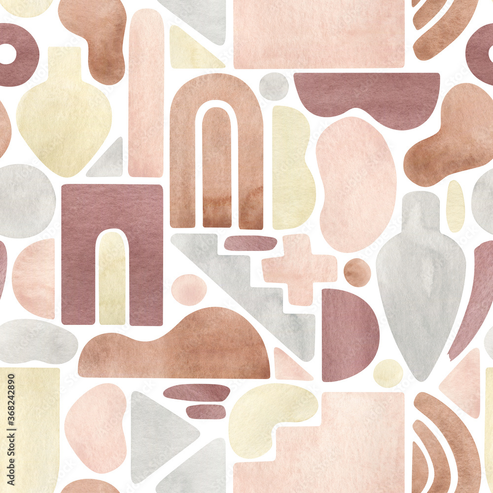 Watercolor seamless pattern with abstract shapes in warm pastel colors ...