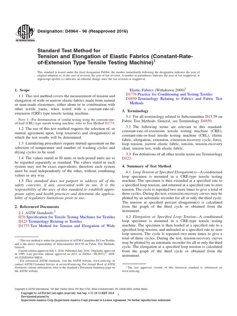 Fabric Tensile Test ASTM D4964 Tension and Elongation of Elastic ...