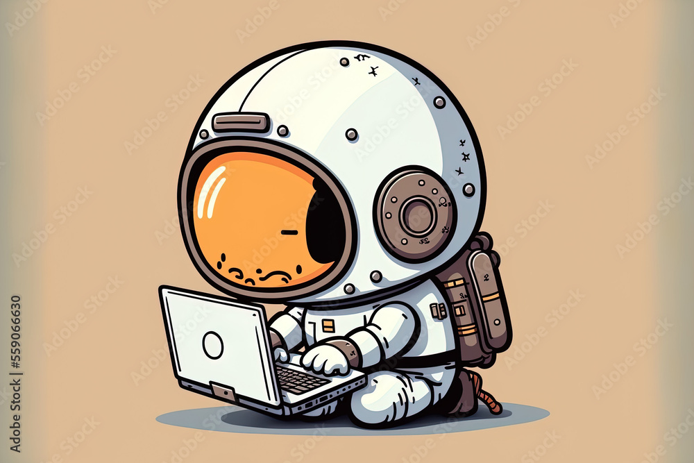 Cartoon illustration of an astronaut working in front of a computer, AI ...