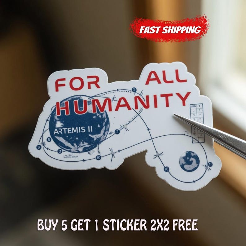 Artemis II Sticker for All Humanity, Moon Mission, Retro Commemorative ...